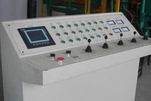 Is táirgí ó Siemens, an Ghearmáin iad PLC agus an scáileán tadhaill. Déanann comh-aireachta rialaithe leictreonach amháin an meaisín blocála agus an cruachadóir a rialú, rud a fhágann go bhfuil sé níos éasca oibriú agus diagnóis teip a dhéanamh.