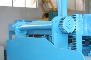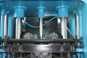 Leis an gCóras Deulding Sioncrónach atá tiomáinte ag giaranna agus slabhraí, oibríonn an dá sorcóir demoulding go sioncrónach agus bogann na múnlaí