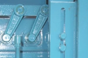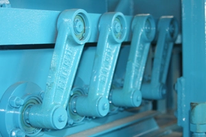 Baintear úsáid as meicníocht chromán-naisc . Tarchuireann sé gluaisne ciorclach an chromáin isteach sa ghluaisne chómhalartach dhíreach den chlaonadh soghluaiste, cinntíonn sé seo go ngluaiseann na pailléid go réidh agus go n-aistrítear táirgí go cobhsaí.
